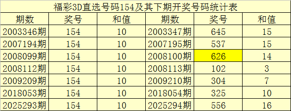 一、开奖回来:第2025293期福彩3D奖号为154。奖号奇偶比为2:1,和值为:10,跨度为:4。