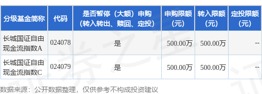 本站音书,11月19日长城基金处罚有限公司发布《长城国证解放现款流指数型证券投资基金暂停大额申购、转移转入、如期定额投资业务的公告》。公告中指示,为保证基金的幽静运作,保护基金份额握有东说念主利益,自2025年11月20日起长城国证解放现款流指数型证券投资基金暂停大额申购、转移转入、如期定额投资业务,下属分级基金调节明细如下: