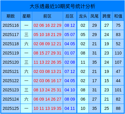 最近10期大乐透数据统计表