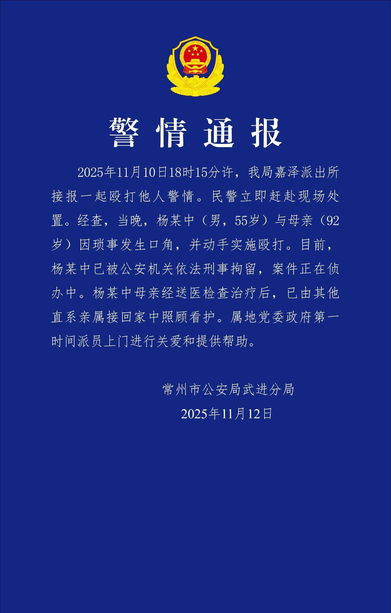 今天怎么配资炒配资网,江苏常州警方通报“男人殴打92岁母亲”,笃定如下: