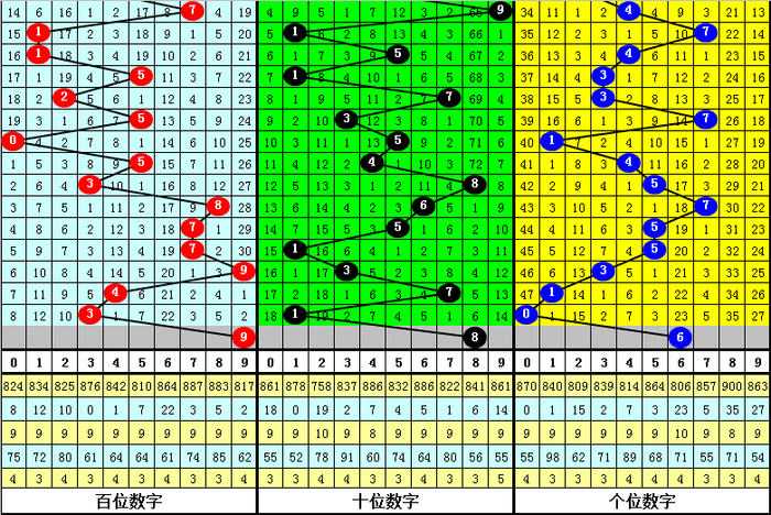 其中两码合0-9开出频次鉴识为:两码合1开出12次,8开出9次,5开出8次,0、6开出7次,9开出6次,2、3、4、7开出5次,其中两码合奇偶比为36:33,大小比为35:34,012路比为25:22:22;